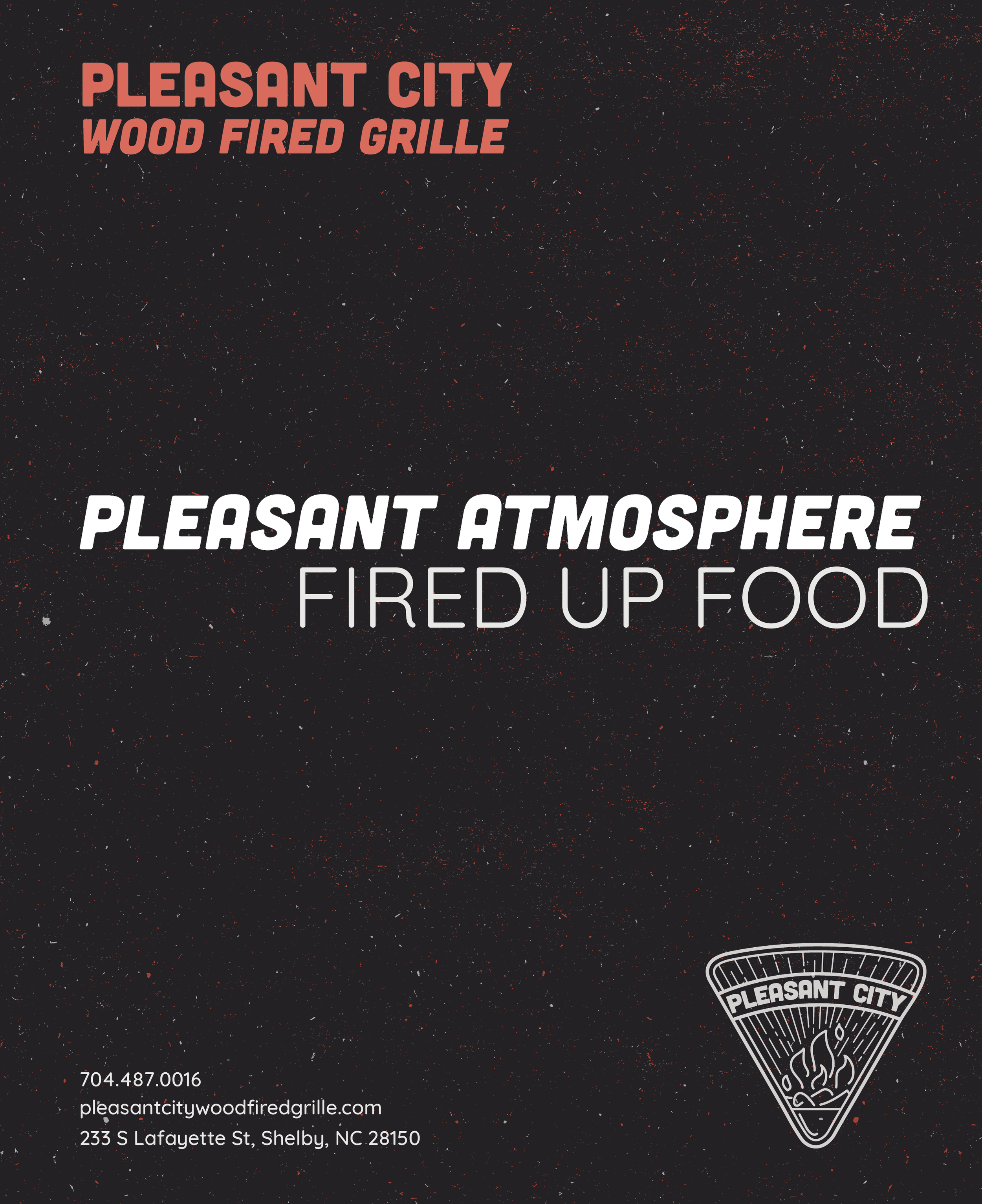 A brand refresh concept for Pleasant City Woodfire Grille in Shelby, NC, blending its rustic charm with a modern bar and grille aesthetic.
